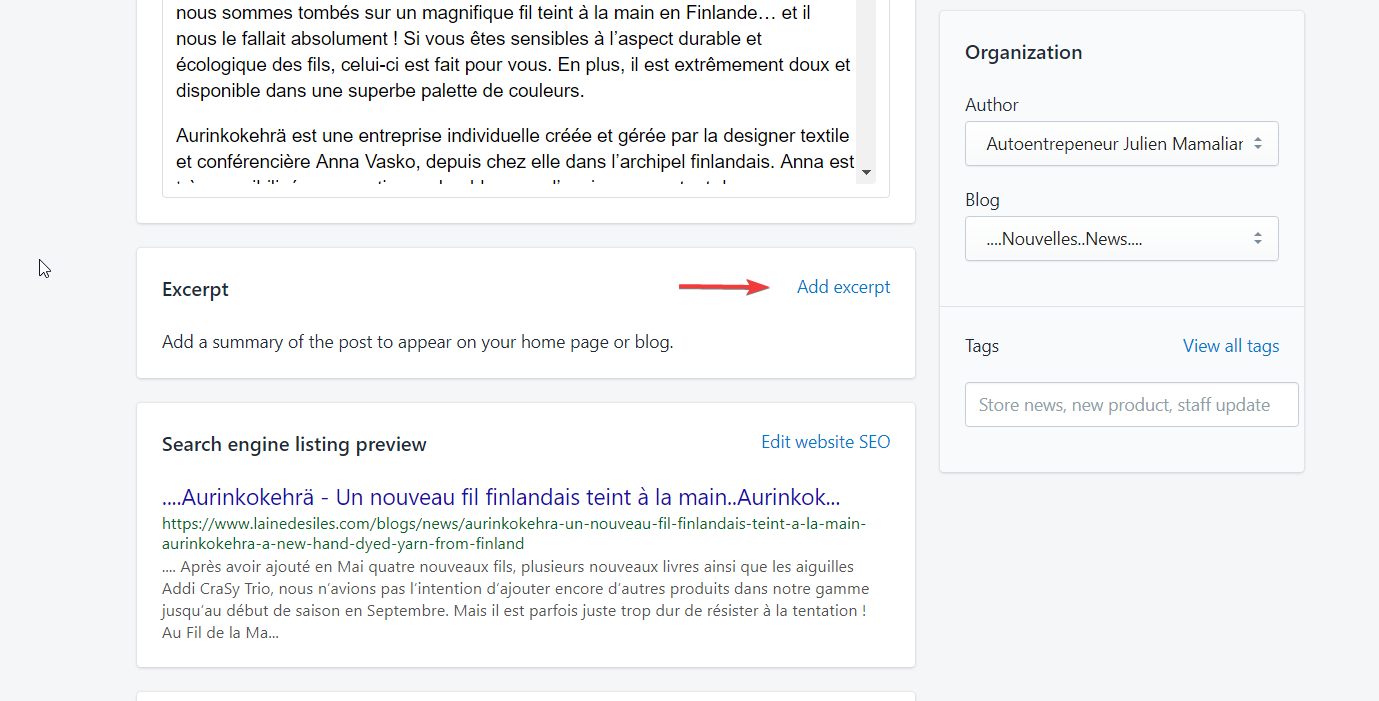 If you wish to fix this, you should write your own excerpt. Then, Shopify will not guess at the excerpt, it’ll use what you’ve written.